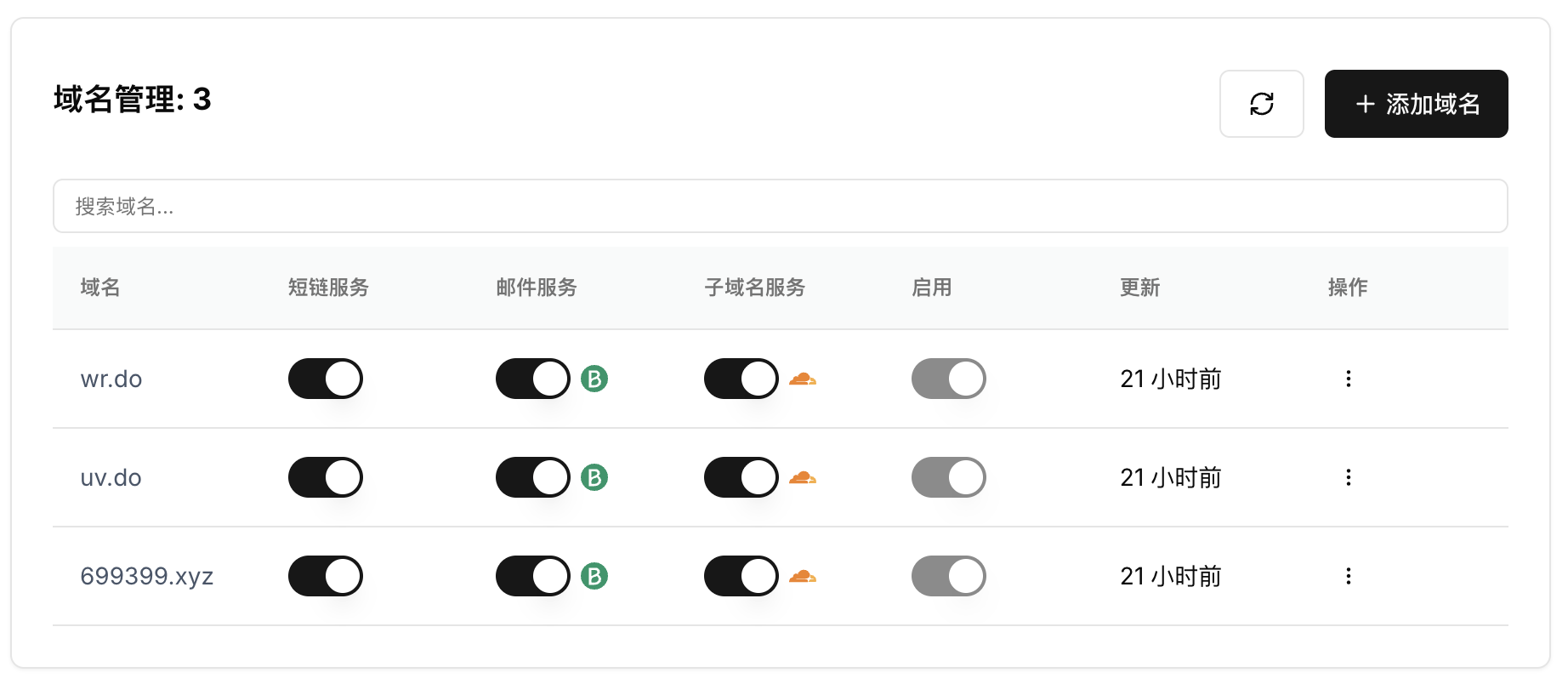 Note: The BREVO_API_KEY configured here is used by default for the subdomain application notification feature and is not used for sending emails directly. You can also fill this key in the domain configuration below as the sender for the email service module.